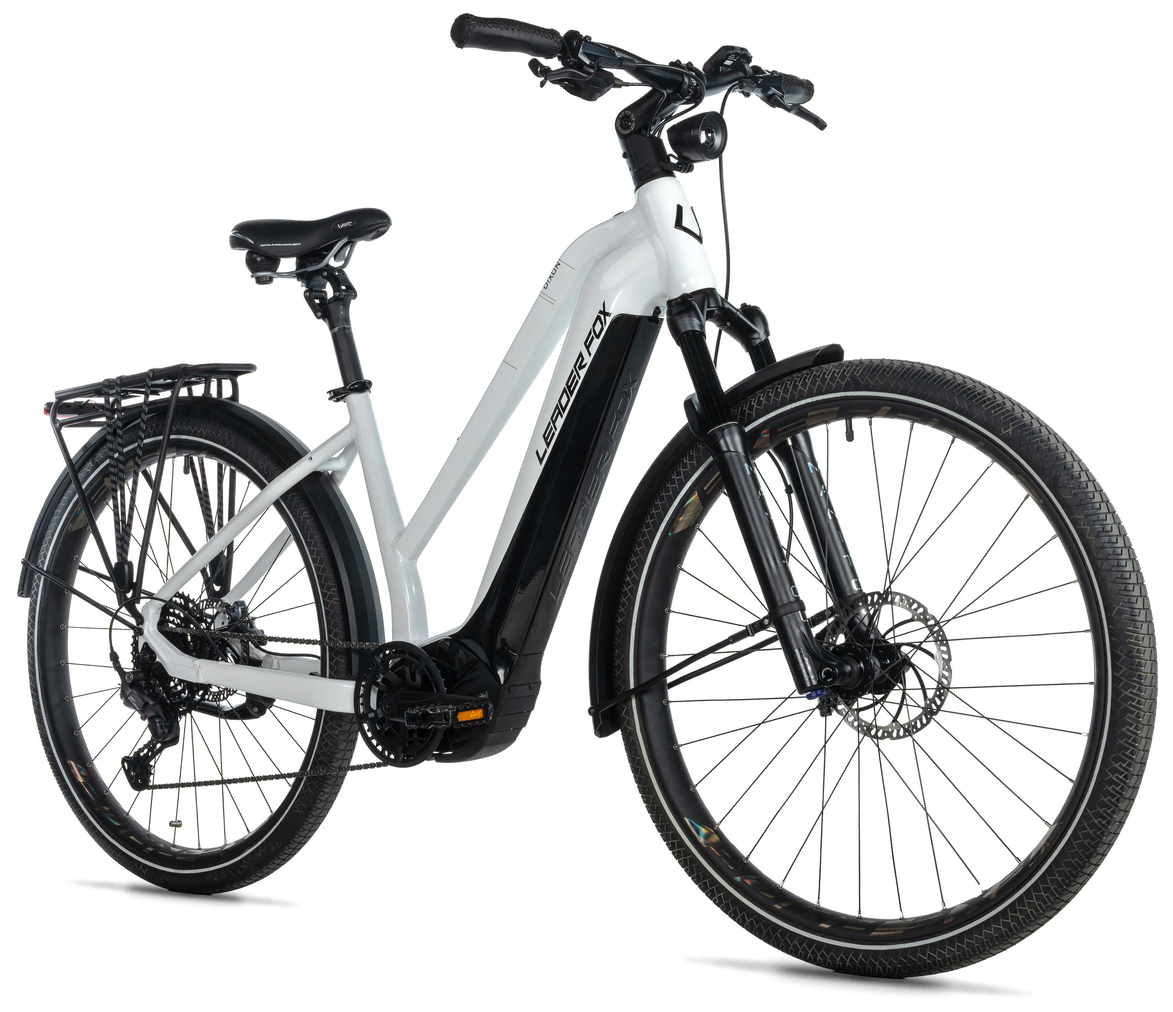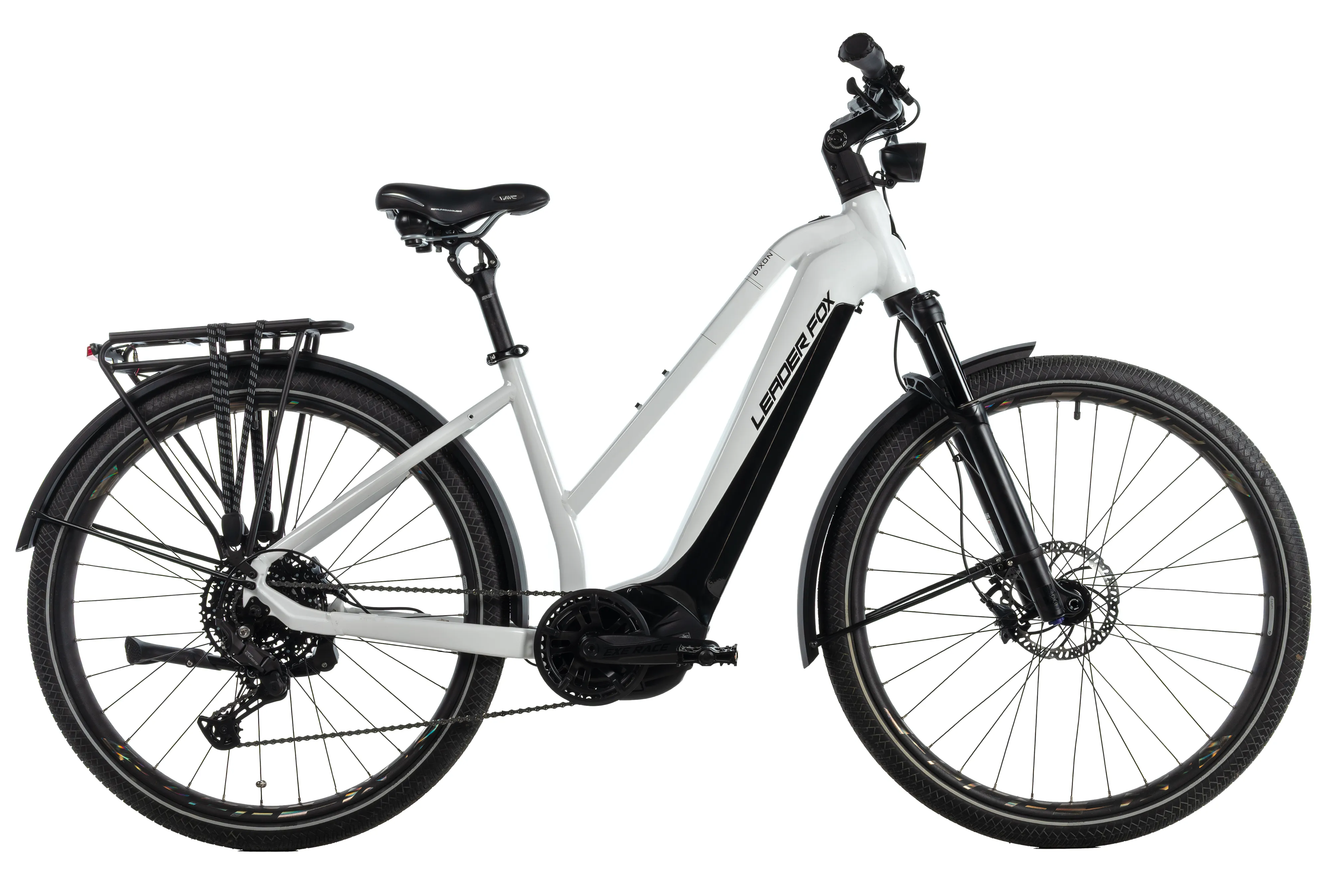 DIXON je připraven nejen na dlouhé výpravy, ale i na běžný každodenní provoz. Výkonné přední LED osvětlení EXERACE se svítivostí 100 LUX zajišťuje výbornou viditelnost i za zhoršených podmínek, zatímco hliníkové blatníky chrání před nečistotami a vodou. Komfortní sedlo Selle Royal Moderate Exploria podporuje pohodlný posed i při delších jízdách.