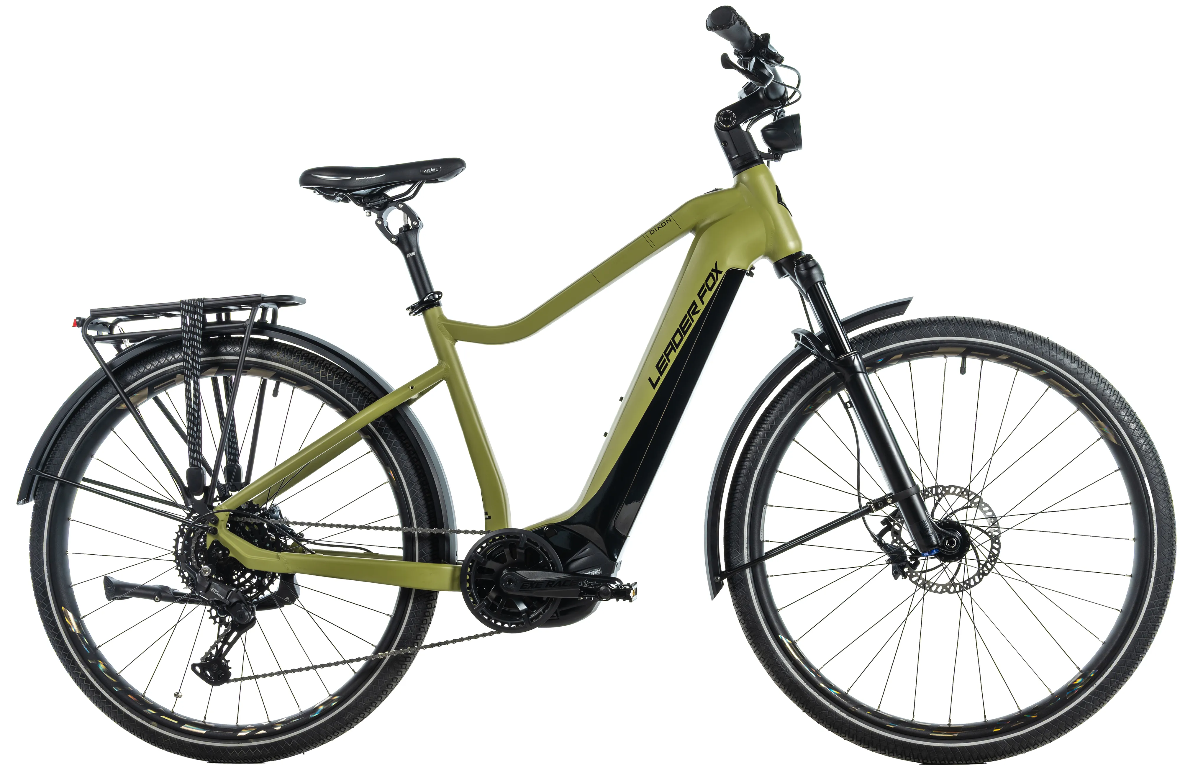 DIXON je připraven nejen na dlouhé výpravy, ale i na běžný každodenní provoz. Výkonné přední LED osvětlení EXERACE se svítivostí 100 LUX zajišťuje výbornou viditelnost i za zhoršených podmínek, zatímco hliníkové blatníky chrání před nečistotami a vodou. Komfortní sedlo Selle Royal Moderate Exploria podporuje pohodlný posed i při delších jízdách.