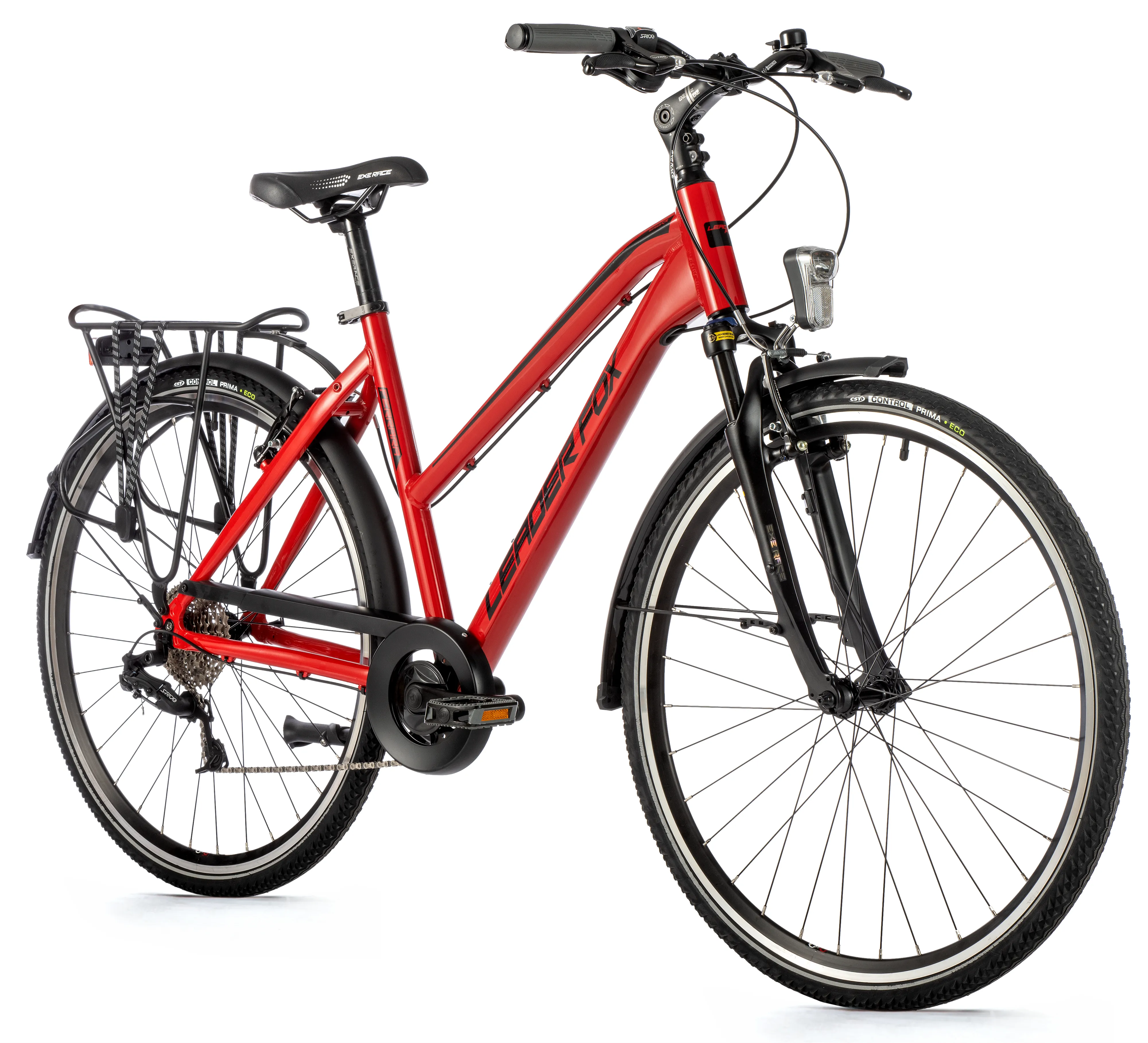Dámské trekingové kolo Leader Fox FERRARA 28" v hliníkovém rámu, s blatníky a bateriovým LED osvětlením. Užijte si pohodlné cestování po městě nebo odpolední výlety po cyklostezkách