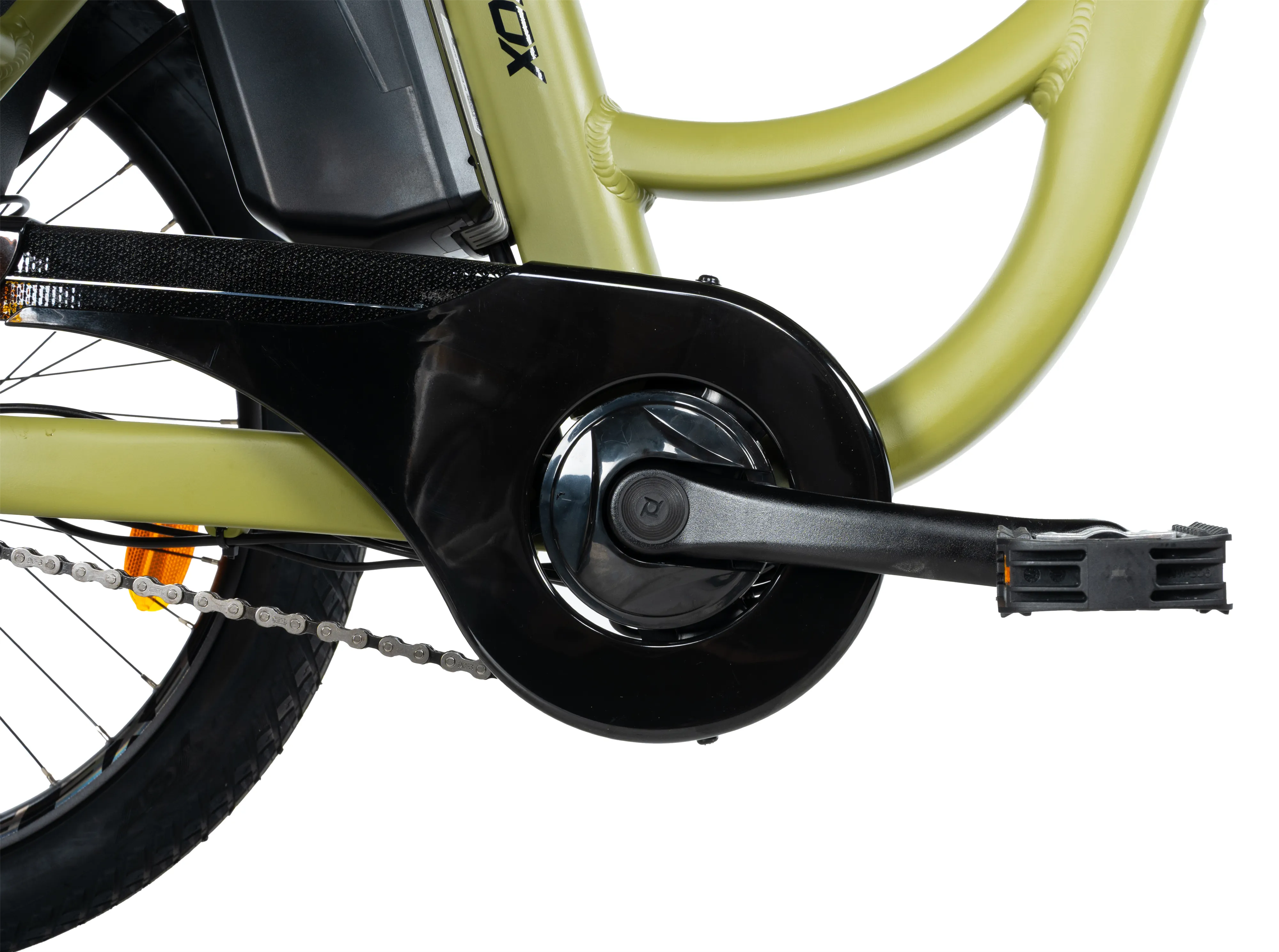 Přední elektromotor BAFANG vyniká plynulým a tichým chodem. Nabízí nominální výkon 250 W, max. výkon 350 W a kroutící moment 45 Nm.